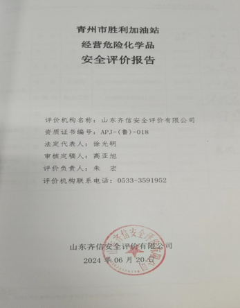 青州市勝利加油站位于青州市王府街道辦事處駐地五里村(膠王路172Km+500m北側),成立于2012年03月22日,取得青州市場監督管理局頒發的營業執照,類型為個人獨資企業,法定負責人為郄國棟,主要負責人為劉琦。主要從事汽油和柴油的經營,經營方式為零售。 該站持有的《成品油零售經營批準證書》(證書編號:魯油零售證書第3707113086號),有效期自2020年11月27日至2025年11月27日。該站持有的《危險化學品經營許可證》(證書編號:魯濰危化經[2021]007127號),有效期自2021年10月21日至2024年10月20日。該加油站在營業期間未發生安全事故。 該加油站現有埋地油罐4臺,儲罐均為埋地雙層SF臥式儲罐,汽油罐2臺(單罐容積為10m3),柴油罐2臺(單罐容積為10m3),柴油折半計入,該加油站油罐總容積為30m3,根據《汽車加油加氣加氫站技術標準》(GB50156-2021)第3.0.9條之規定,為三級加油站。 該加油站現有從業人員9人,其中安全管理人員1名。該站已建立了安全生產責任制度、安全管理制度和安全操作規程等,制定了生產安全事故應急救援預案,成立了安全生產領導小組,配備了安全員,主要負責人和安全員取得了安全生產知識和管理能力考核合格證。其他從業人員經本單位三級培訓考核合格。 依據《中華人民共和國安全生產法》(中華人民共和國主席令[2002]第70號,根據2021年6月10日中華人民共和國第十三屆全國人民代表大會常務委員會第二十九次會議《全國人民代表大會常務委員會關于修改〈中華人民共和國安全生產法〉的決定》修正)、《危險化學品安全管理條例》(國務院令第591號,根據國務院令第645號修訂)、《危險化學品經營許可證管理辦法》(國家安全生產監督管理總局令第55號,根據安監總局令第79號修訂)的要求,危險化學品經營許可證換發需進行安全評價,因此,青州市勝利加油站委托山東齊信安全評價有限公司進行經營危險化學品安全評價。 接受委托后,我公司立即成立評價組,在進行資料與標準收集、現場調研、項目資料分析、危險與有害因素分析的基礎上,依據《山東省加油站安全評價導則》(魯安監發[2006]114號),在經營單位的通力合作下,對加油站進行了評價并編寫完成了《青州市勝利加油站經營危險化學品安全評價報告》。 |