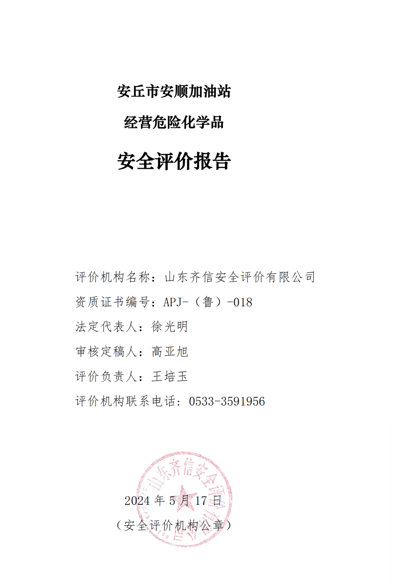 安丘市安順加油站位于山東省濰坊市安丘市輝渠鎮雹泉村,成立于2012年08月20日,企業類型為個人獨資企業,2018年12月11日取得安丘市市場監督管理局核發的新的營業執照,投資人為都煥玉。該加油站主要從事汽油和柴油的經營,經營方式為零售。 該站于2021年01月25日取得《成品油零售經營批準證書》(證書編號:魯油零售證書第3707063087號),有效期自2021年01月25日至2026年01月25日。該站持有的《危險化學品經營許可證》(證書編號:魯濰危化經[2021]008113號),有效期自2021年07月26日至2024年07月25日。 自2021年07月26日取得《危險化學品經營許可證》以來,加油站周邊環境、總平面布局、加油工藝、危險化學品的儲存能力未發生變化,營業期間未發生過安全事故。 該加油站現有從業人員6人,其中安全管理人員1名。該站已建立了安全生產責任制度、安全管理制度和安全操作規程等,制定了生產安全事故應急救援預案,成立了安全生產領導小組,配備了安全員,主要負責人和安全員取得了安全生產知識和管理能力考核合格證。其他從業人員經本單位培訓考核合格。 該加油站主營汽油、柴油等成品油,共有加油機4臺,其中2臺雙槍汽油加油機,2臺雙槍柴油加油機(加油機呈東西兩排布置,東側一排自南向北依次為0#/0#、92#/92#,西側一排自南向北依次為0#/0#、95#/95#),柴油冬季經營-10#,其它季節經營0#,無自助加油機。該站設有埋地臥式內鋼外玻璃纖維增強塑料雙層儲油罐4臺,其中汽油儲罐2臺,容積均為30m3,柴油儲罐2臺,容積均為50m3(油罐自北向南依次為95#、92#、0#、0#),柴油折半后計入加油站儲罐總容積為110m3,該站為二加油站。該站采用潛油泵式加油工藝,加油管道為雙層復合管材,管道設人工檢漏點,進油、通氣、油氣回收系統管道為流體輸送用無縫碳鋼管材,加油工藝管道全部埋地設置,且不穿越站房。加油機加油軟管設置安全拉斷閥,加油機底部設置剪切閥;油罐設有帶有高液位報警功能的液位監測報警系統等信息化設備。加油機機體、值班室內設置緊急切斷按鈕,并實現手動復位。加油站設有油罐滲漏檢測立管、汽油卸油油氣回收系統、加油油氣回收系統和三次油氣回收系統。 |