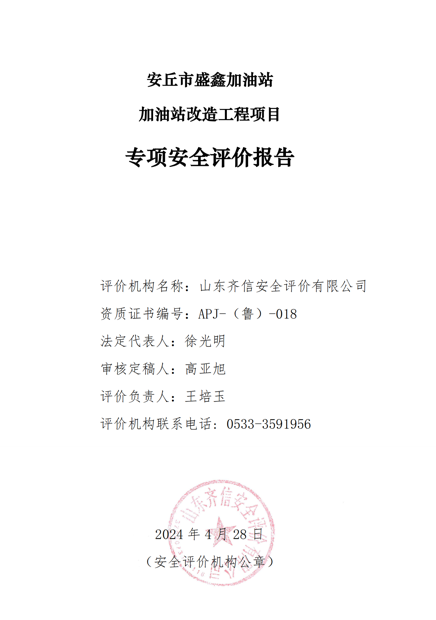 安丘市盛鑫加油站位于山東省濰坊市安丘市官莊鎮駐地央贛路119KM處路西側,成立于2008年7月2日,該站于2017年6月1日取得安丘市市場監督管理局核發的營業執照,投資人為周云鵬。該加油站主要從事汽油和柴油的經營,經營方式為零售。 該站原為官莊鎮農機加油站,2004年4月23日官莊鎮人民政府與周景智簽訂加油站買賣合同,加油站名稱變更為安丘市盛鑫加油站。 該站于2022年8月2日取得《成品油零售經營批準證書》,有效期為2022年8月2日至2027年8月2日(證書編號:魯油零售證書第3707063018號)。該站持有的《危險化學品經營許可證》(證書編號:魯濰危化經[2023]008014號),有效期自2023年7月4日至2026年7月3日。 該加油站現有從業人員4人,其中安全管理人員1名。該站已建立了安全生產責任制度、安全管理制度和安全操作規程等,制定了事故應急救援預案,成立了安全生產領導小組,配備了安全員,主要負責人取得了安全生產知識和管理能力考核合格證,安全員承諾六個月內取證。其他從業人員經本單位培訓考核合格。 1)工程名稱:安丘市盛鑫加油站改造工程。 2)建設規模:改造后該加油站汽油儲存能力40m3,柴油儲存能力50m3,柴油折半后計入加油站儲罐總容積為65m3。根據《汽車加油加氣加氫站技術標準》(GB50156-2021)第3.0.9條,改造后該加油站為三級加油站,不提高加油站的級別。 3)工程性質:改建。 4)工程投資額:本次加油站改造總投資約24萬元,其中新增安全設施投資3萬元,占總投資的12.5%。 5)改造內容 將油罐區原有北側柴油油罐移至南側柴油儲罐南側(自北向南排列依次為95#汽油罐、92#汽油罐、0#柴油罐、-10#柴油罐);拆除原有部分站房,站房占地面積由86m2變為34.6m2;重新敷設-10#柴油儲罐卸油管道、-10#柴油加油管道、-10#柴油通氣管道、汽油加油管道、汽油加油油氣回收管道(加油管道為雙層導靜電熱塑性塑料管道、其他管道為無縫鋼管);拆除原有6臺自吸式加油機(92#、95#雙槍加油機1臺,92#、0#/-10#雙槍加油機1臺,0#/-10#單槍加油機2臺,停用加油機2臺)更換為4臺自吸式雙槍加油機(柴油2臺、92#汽油1臺、95#汽油1臺);拆除洗車房。 |