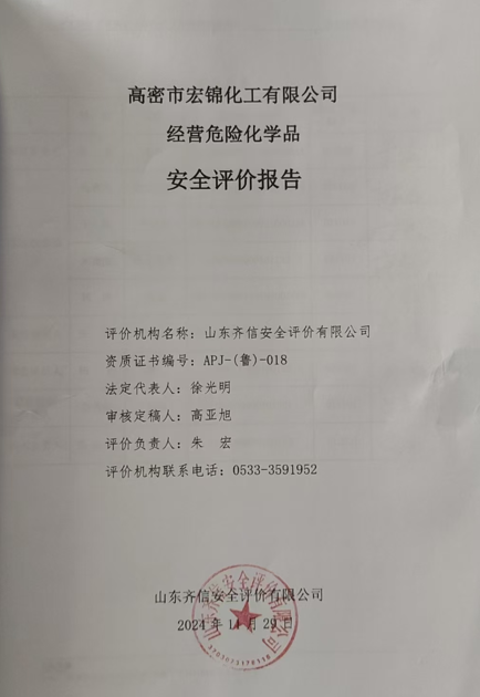 高密市宏錦化工有限公司成立于2005年03月25日,注冊地位于山東省濰坊市高密市醴泉街道醴泉工業園盛泉街1671號,法定代表人為韓洪波。經營范圍包括銷售化工產品(其中危險化學品按《危險化學品經營許可證》核定的方式和范圍經營)、建筑材料、五金制品;經營國家允許范圍內的貨物進出口業務。(依法須經批準的項目,經相關部門批準后方可開展經營活動)。 該公司于2021年12月16日換發了《危險化學品經營許可證》,登記編號:魯濰(高密)危化經[2021]090248號,有效期2022年01月10日至2025年01月09日。經營方式帶有儲存設施的經營,經營范圍包含:有儲存的經營:氫氧化鈉溶液[含量>30%];無儲存的經營:鹽酸、硫酸、次氯酸鈉溶液[含有效氯>5%]。因主要負責人調整,2024年6月18日該公司重新換發了《危險化學品經營許可證》,有效期、經營方式未發生變化。 為貫徹“安全第一,預防為主,綜合治理”的方針,確保已建項目在安全方面符合國家的有關法律、法規、標準和規定,根據《中華人民共和國安全生產法》、《危險化學品安全管理條例》等規定,根據《危險化學品安全管理條例》第二十二條“生產、儲存危險化學品的企業,應當委托具備國家規定的資質條件的機構,對本企業的安全生產條件每3年進行一次安全評價,提出安全評價報告”;《山東省<危險化學品經營許可證管理辦法>實施細則》第十五條“經營許可證有效期滿后繼續從事危險化學品經營活動的,要在期滿3個月前,向發證機關提出經營許可證的延期申請,并提交延期申請書及第十三條、第十四條規定的文件、資料”,受高密市宏錦化工有限公司委托,山東齊信安全評價有限公司承擔了高密市宏錦化工有限公司危險化學品儲存經營項目的安全現狀評價工作。 評價組成員根據國家有關法律、法規、條例、標準和規范,并依據該公司提供的有關資料,在對儲存設施進行了實地考察、現場詢問、查閱資料和調研的基礎上,通過科學分析并采用安全檢查表進行評價,編制完成了該項目的安全評價報告。 |