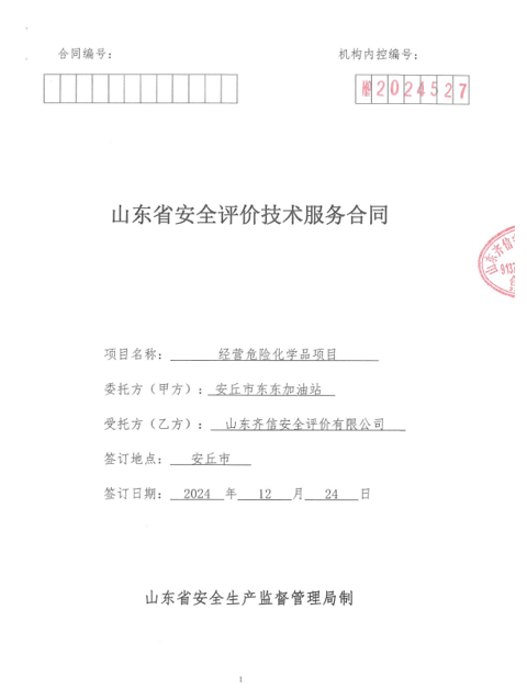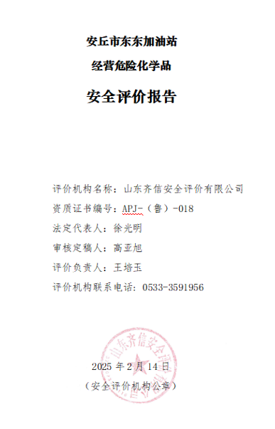 安丘市東東加油站位于安丘市景芝鎮臨浯東路南側,該站成立于2012年8月24日,2024年12月18日取得安丘市行政審批服務局核發的新的營業執照,投資人為張家豪。該加油站主要從事汽油和柴油的經營,經營方式為零售。 該站于2021年8月11日取得《成品油零售經營批準證書》(證書編號:魯油零售證書第3707061012號),有效期為2021年8月11日至2026年8月11日。該站持有的《危險化學品經營許可證》(證書編號:魯濰危化經[2022]008048號),有效期自2022年11月06日至2025年11月05日。 該加油站因變更經營主體,變更了企業名稱、法定代表人,需換發新的危險化學品經營許可證。依據《危險化學品經營許可證管理辦法》(國家安監總局令第55號,根據2015年5月27日國家安全監管總局令第79號修正)以及等法律、法規、文件的要求,需要按照相關法律法規的要求進行安全評價。 該加油站主營汽油、柴油等成品油,共有加油機4臺,其中92#雙槍加油機1臺,柴油單槍加油機1臺,95#單槍加油機1臺,停用加油機1臺,柴油冬季經營-10#,其它季節經營0#,無自助加油機。該站設埋地臥式內鋼外玻璃纖維增強塑料雙層儲油罐3 臺,汽油儲罐2臺,容積均為20m3,柴油儲罐1臺,容積為20m3(由南向北依次是0#、92#、95# ),柴油折半后計入,儲罐總容積為50m3,該站為三級加油站。該站采用自吸式加油工藝,該站加油管道為雙層復合管材,卸油、通氣、油氣回收系統管道為流體輸送用無縫碳鋼管材,加油工藝管道全部埋地設置,且不穿越站房。加油機加油軟管設置安全拉斷閥,油罐設有帶有高液位報警功能的液位監測報警系統等信息化設備。加油機機體、值班室內設置緊急切斷按鈕,并實現手動復位。加油站設有油罐滲漏檢測立管、汽油卸油油氣回收系統、加油油氣回收系統。 |